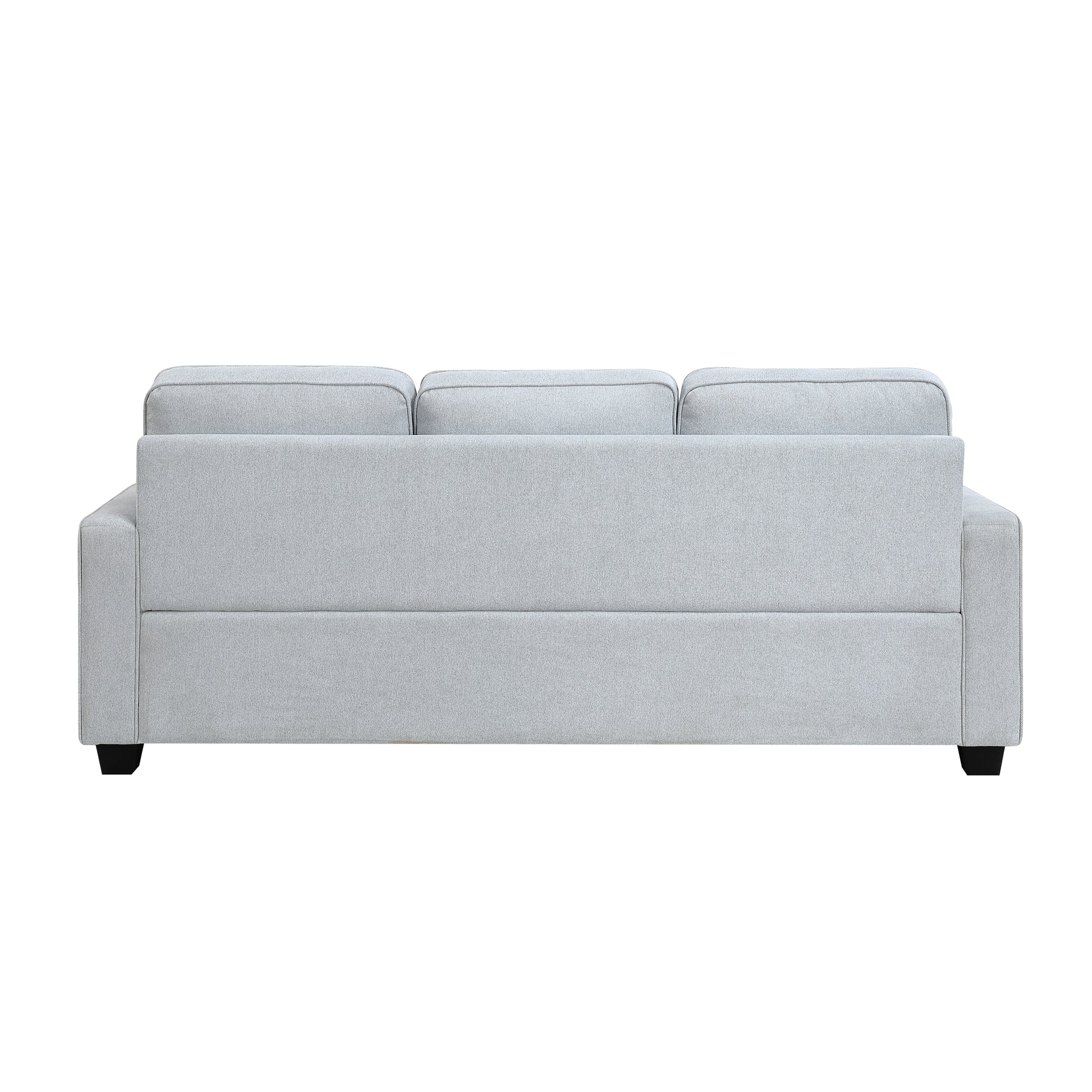 Bring versatile comfort and a touch of modern style to your home with this Light gray Fabric Sofa. Featuring reversible back and seat cushions, this 3-seater couch offers extended comfort and longevity, allowing you to easily refresh its appearance. Two decorative pillows add a touch of pattern and comfort. The soft, light gray fabric upholstery complements a variety of décor styles, while the clean lines and contemporary design enhance any living space. The sturdy block feet provide a stable foundation, making this sofa a perfect addition to family rooms, living rooms, or entertainment areas. Enjoy the perfect blend of comfort, style, and practicality with this contemporary couch.