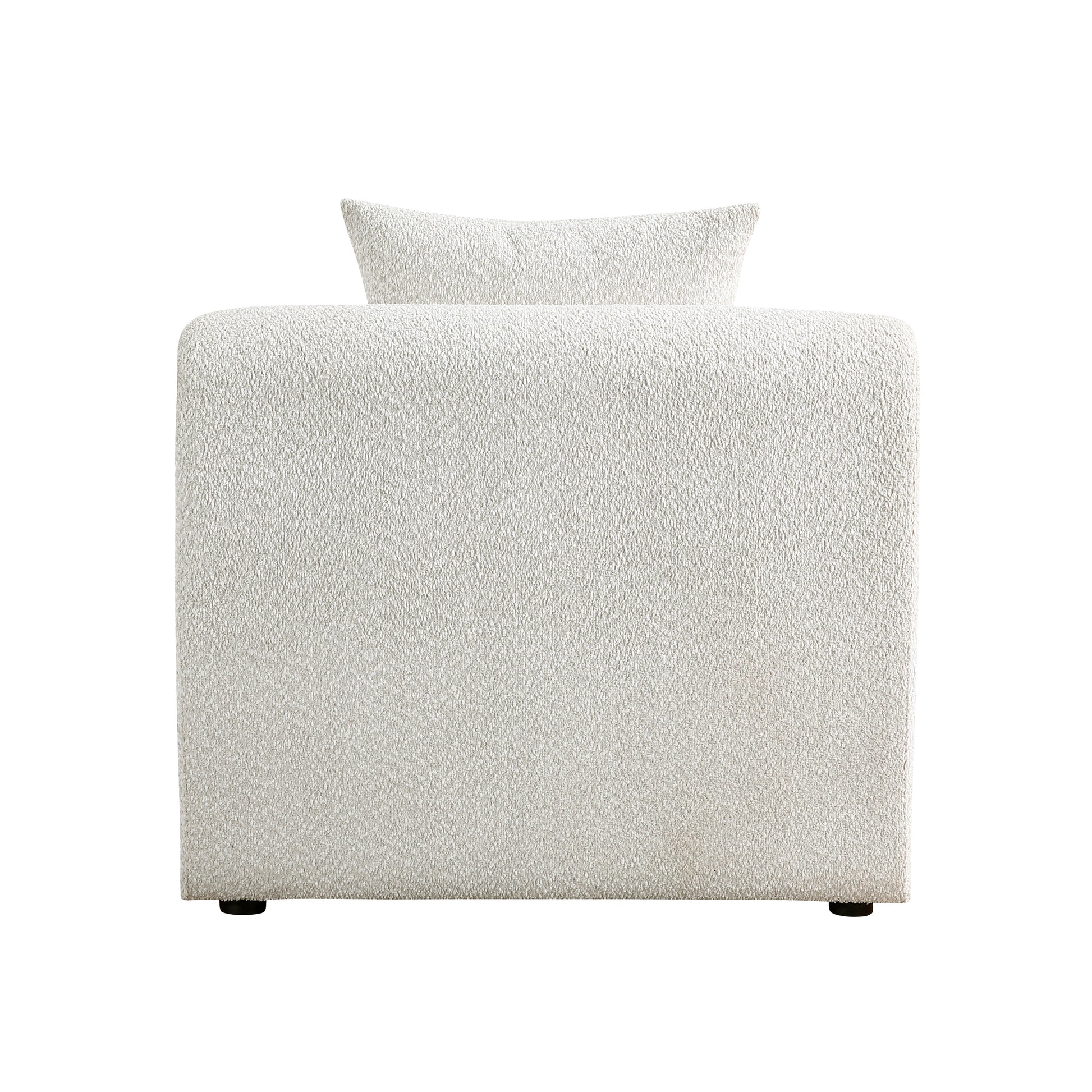 Elevate your living space with this beige chenille modular sofa, blending contemporary modern style with exceptional comfort and versatility. This sofa boasts a solid wood and plywood frame, high-density foam padding over pocket coils, and soft chenille fabric upholstery for a luxurious seating experience. The attached back and seat cushions offer a sleek, streamlined look, while the included five square pillows add a touch of personality and extra comfort. The modular design allows for easy reconfiguration and expansion, making it perfect for any room. Exposed legs in a black faux wood finish provide a stylish foundation. Best of all, no assembly is required, so you can enjoy your new sofa right away.