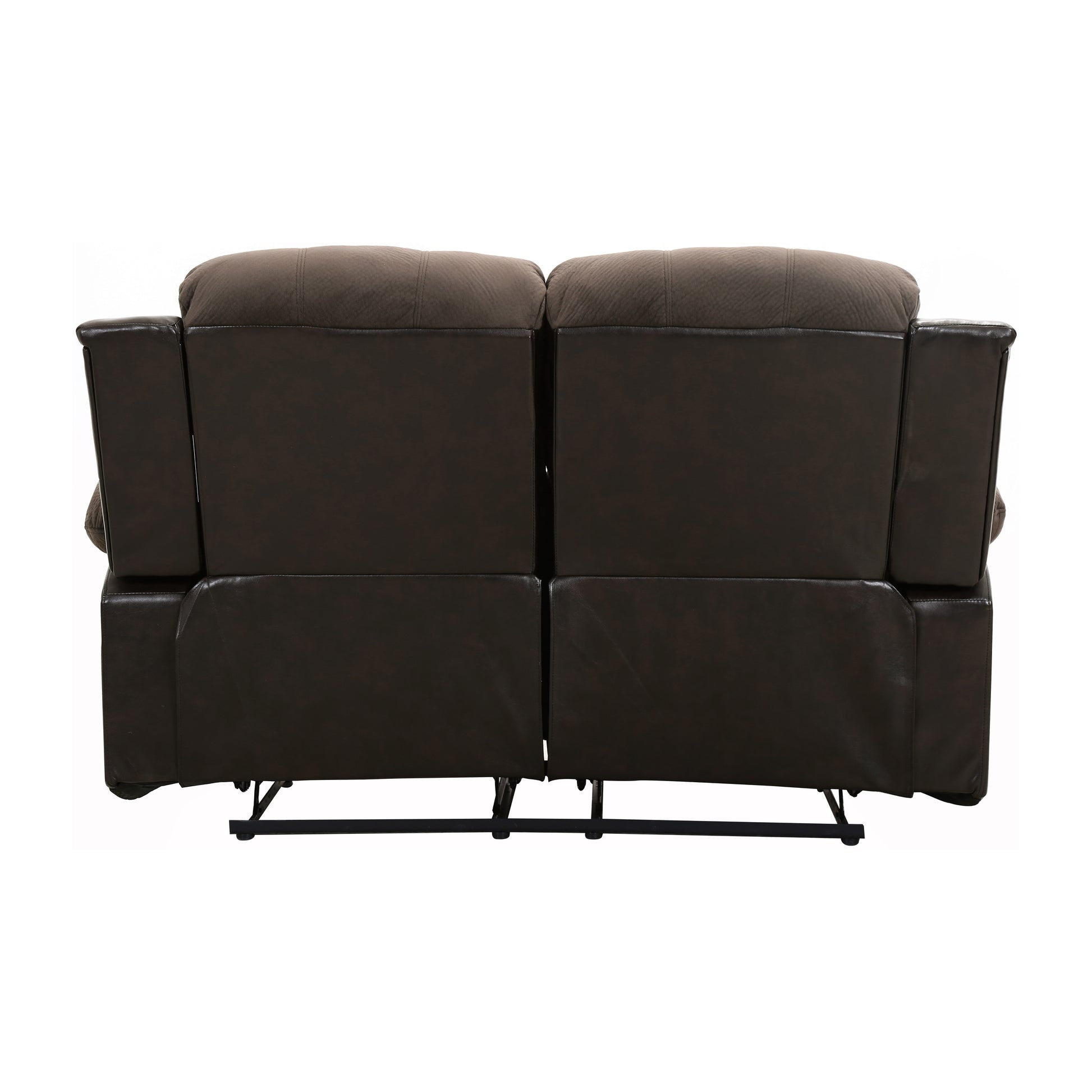 The reclining Cranley Collection utilizes a release mechanism that with a gentle pull sends you straight into your ultimate comfort zone. Chocolate textured plush microfiber with faux leather.