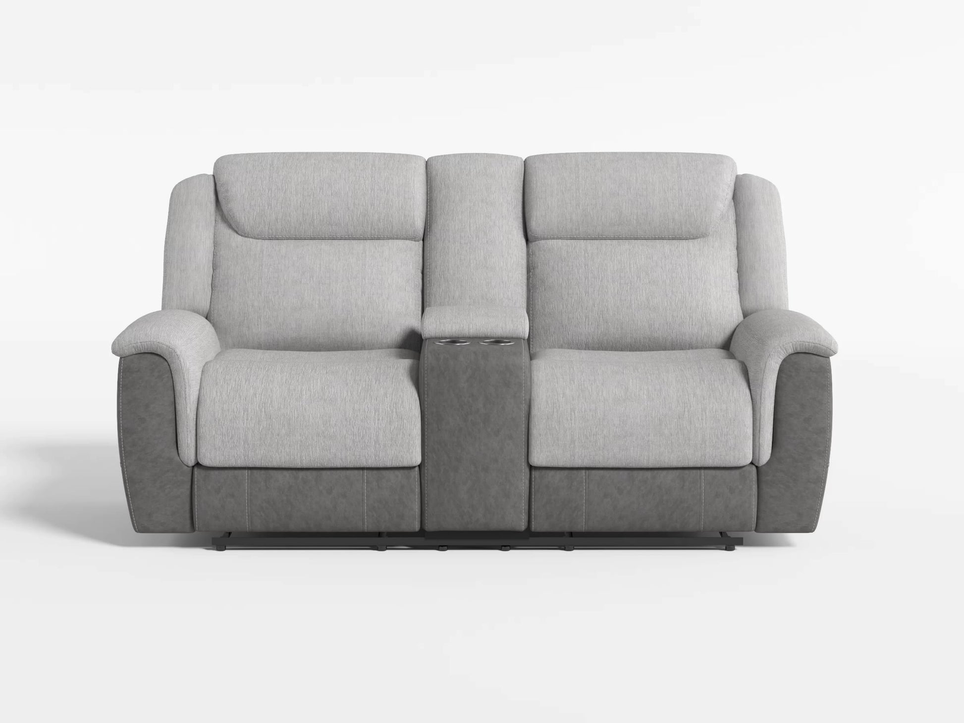 Upgrade your relaxation with this plush dual reclining loveseat with center console, designed for ultimate comfort and convenience. Featuring a pull-tab reclining function, deeply cushioned seating, and padded armrests, this loveseat delivers exceptional lumbar and full-body support. The built-in center console includes dual cup holders and a storage compartment, making it perfect for keeping drinks, remotes, and essentials within reach. Upholstered in soft yet durable two-tone fabric, this loveseat blends modern style with cozy appeal. Built with a sturdy metal seat frame and reinforced reclining system, it ensures long-lasting durability and a dual reclining operation, making it the ideal addition to your living room, home theater, or entertainment space.