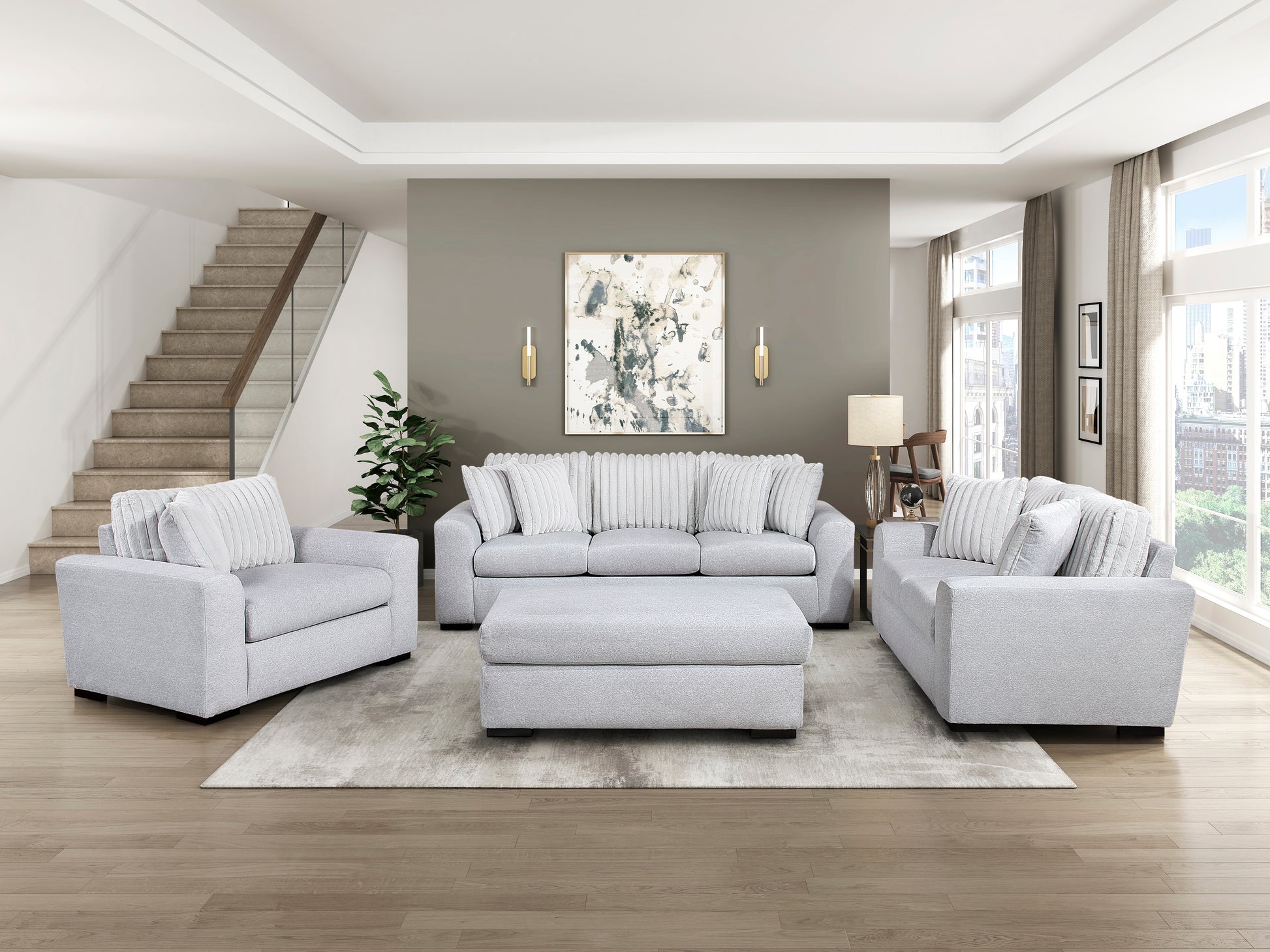 Enhance your living space with the comfort and versatility of this gray microfiber ottoman. Featuring a sturdy plywood frame, high-density foam padding over pocket coils, and soft textured microfiber upholstery, this ottoman offers both durability and a luxurious feel. The solid wood feet in a sleek black finish provide a modern foundation, while the 300lb weight capacity ensures reliable support. Perfect as a footrest, extra seating, or a stylish accent piece, this ottoman is a practical addition to any living room, bedroom, or den. Easy assembly ensures you can enjoy its comfort and style quickly.
