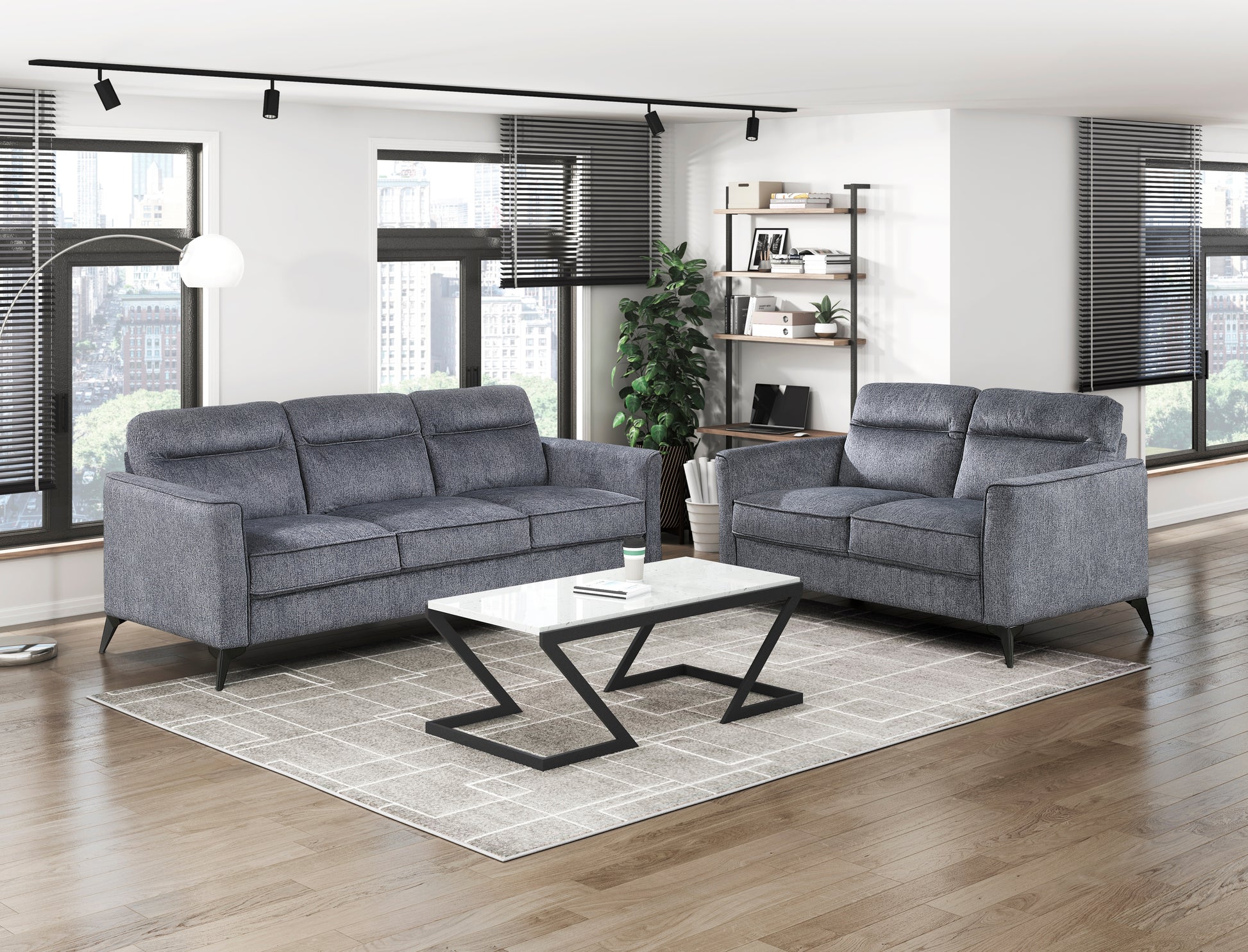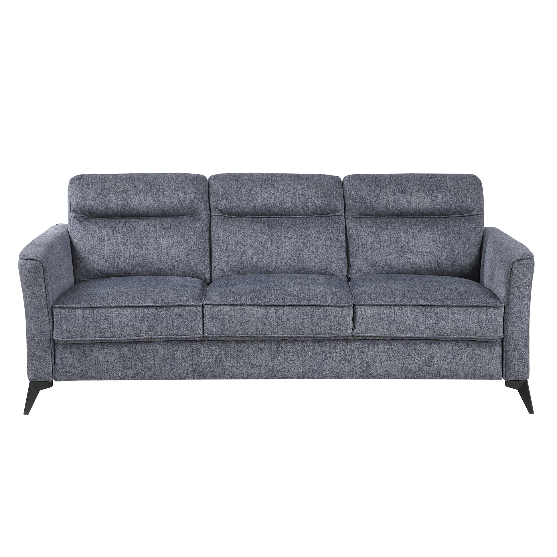 Elevate your living room with this Tellot Contemporary Sofa, a perfect blend of style and comfort. This 3-seater couch features a sleek, minimalist design with clean lines and a stylish gray fabric upholstery, effortlessly complementing any modern décor. The sturdy black metal legs provide a stable and stylish foundation, while the generously cushioned seats and back offer exceptional comfort for relaxing and entertaining. Ideal for families, apartments, or anyone seeking a chic and comfortable seating solution, this sofa brings both aesthetic appeal and practical function to your home.