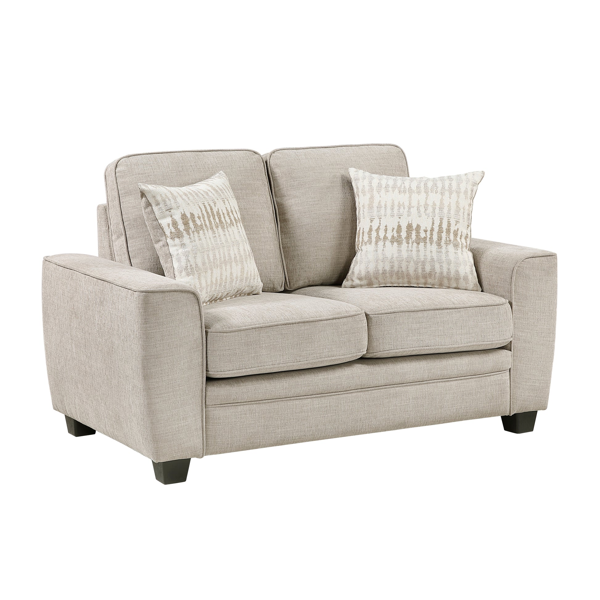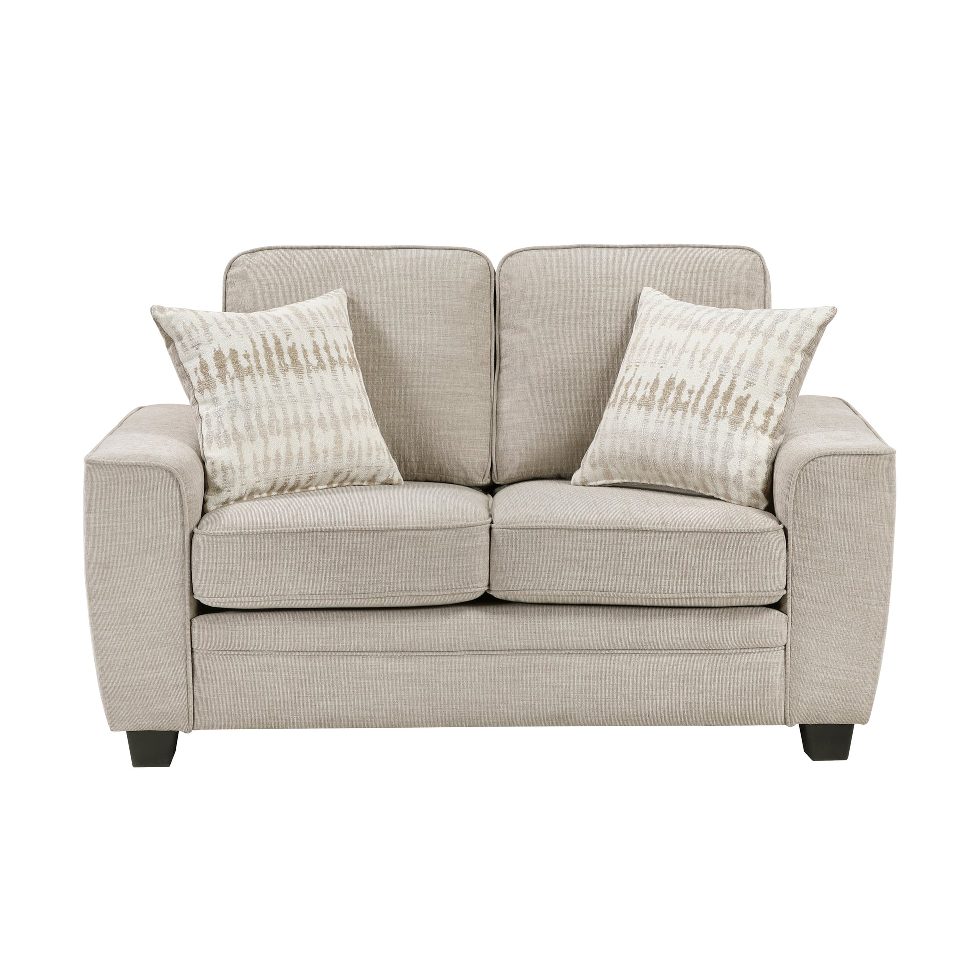 Maximize comfort and style in your living space with this taupe chenille loveseat, designed for both durability and relaxation. Featuring a sturdy plywood frame, high-density foam padding over pocket coils, and soft chenille fabric upholstery, this loveseat offers a luxurious seating experience. The reversible back and seat cushions extend the life of your furniture, while the removable cushion covers with zippers make cleaning a breeze. The exposed feet with a black faux wood finish add a touch of modern elegance, and the two included decorative pillows enhance comfort and style. With a 300lb weight capacity per seat (600lb total) and easy assembly, this loveseat is perfect for enhancing your living room, apartment, or small space.