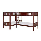 Maximizing sleep space is achieved with the stylish Rowe Collection. This transitional corner bunkbed is featured in a dark cherry finish making it an appropriate choice for a number of youth bedroom settings. The four twin beds that comprise the unit conjoin to fit perfectly within your available space.