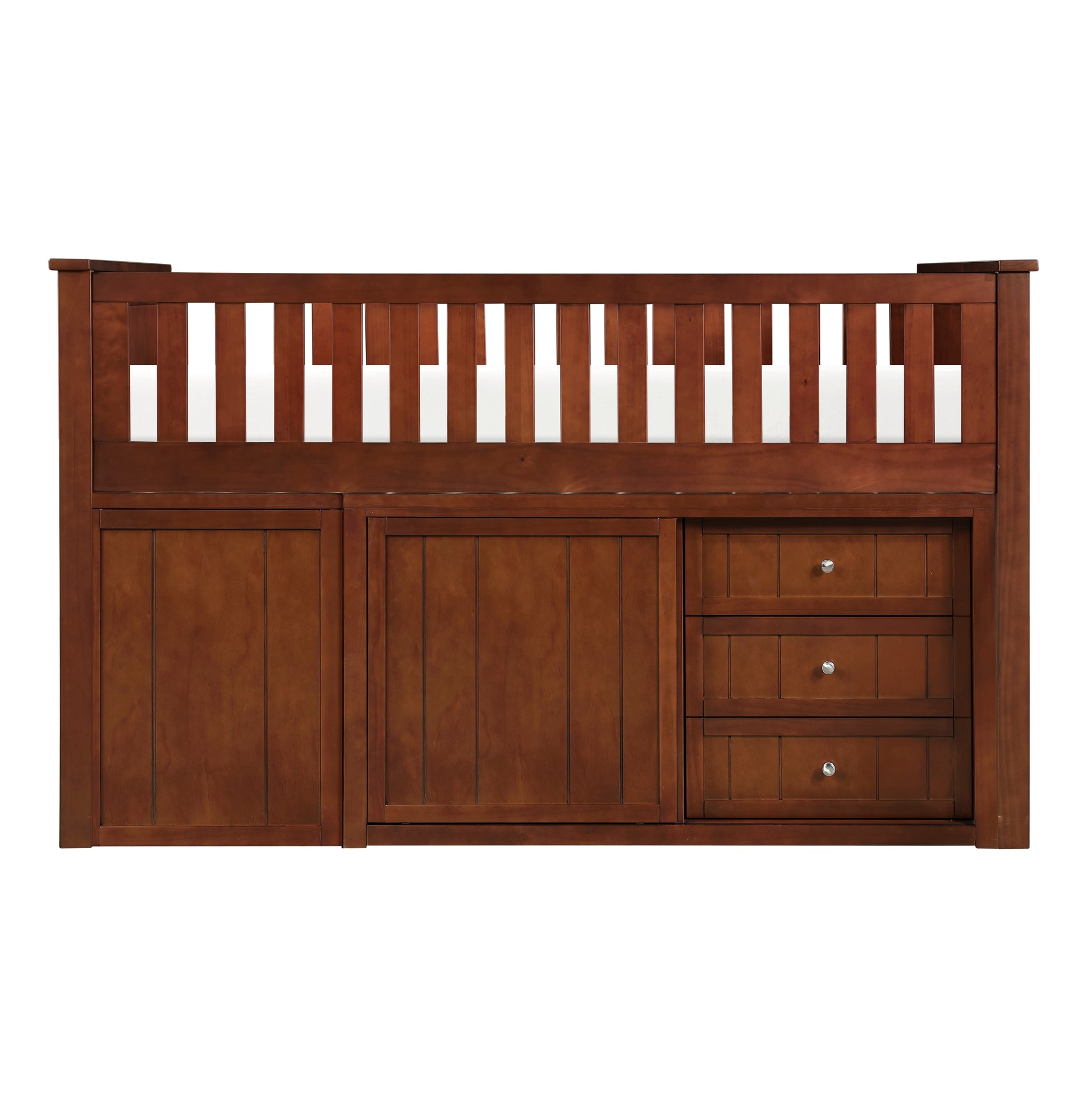 Maximizing sleep space is achieved with the stylish Rowe Collection. This transitional twin low-loft bunkbed is featured in a dark cherry finish making it an appropriate choice for a number of youth bedroom settings. An angled ladder provides easy access to the loft platform. Providing below-the-bed storage are two dressers and bookcase, each specifically designed to fit within the parameters of the available lower space with the dressers providing shelf and drawer storage and the bookcase allowing for open display of your child's favorite books and collectables.