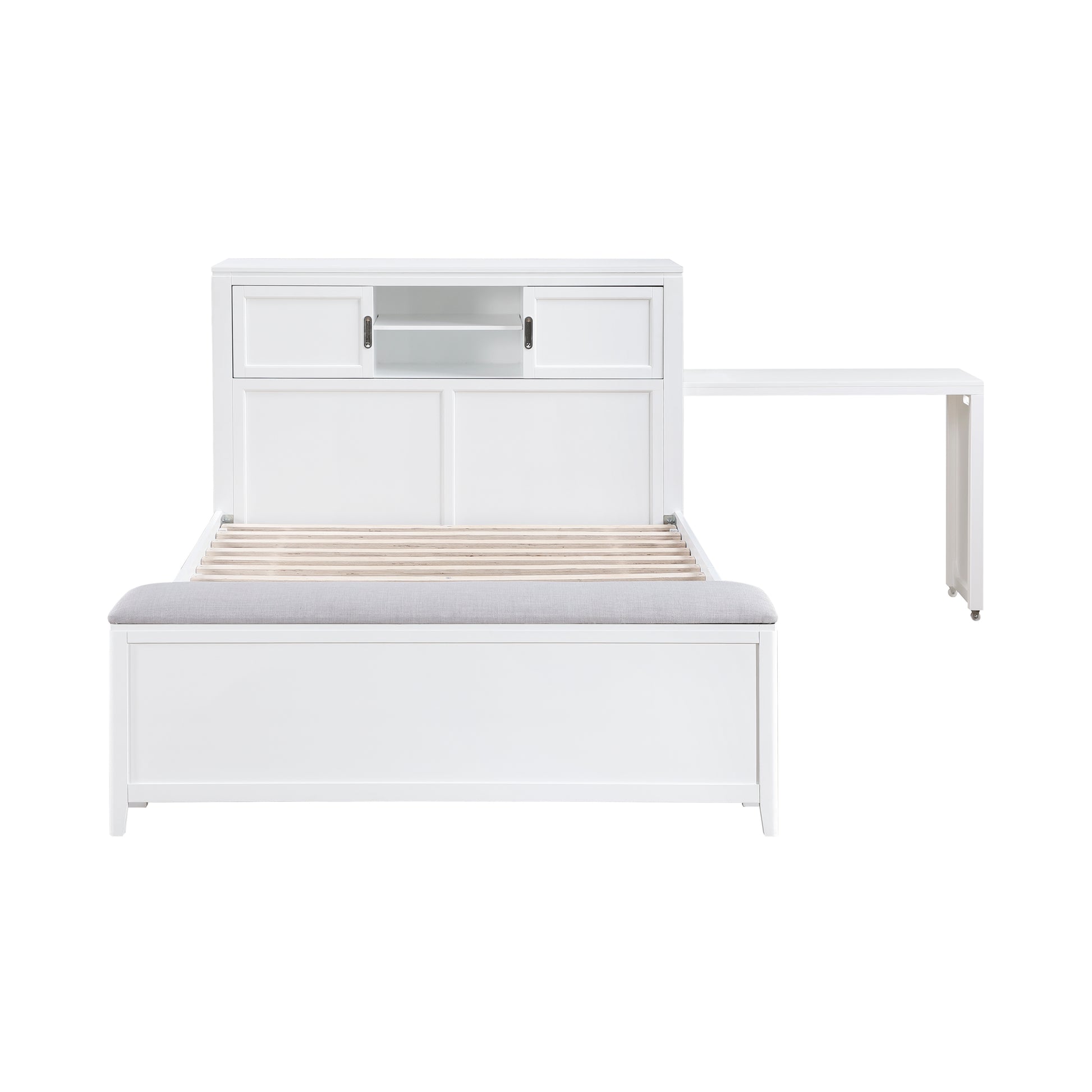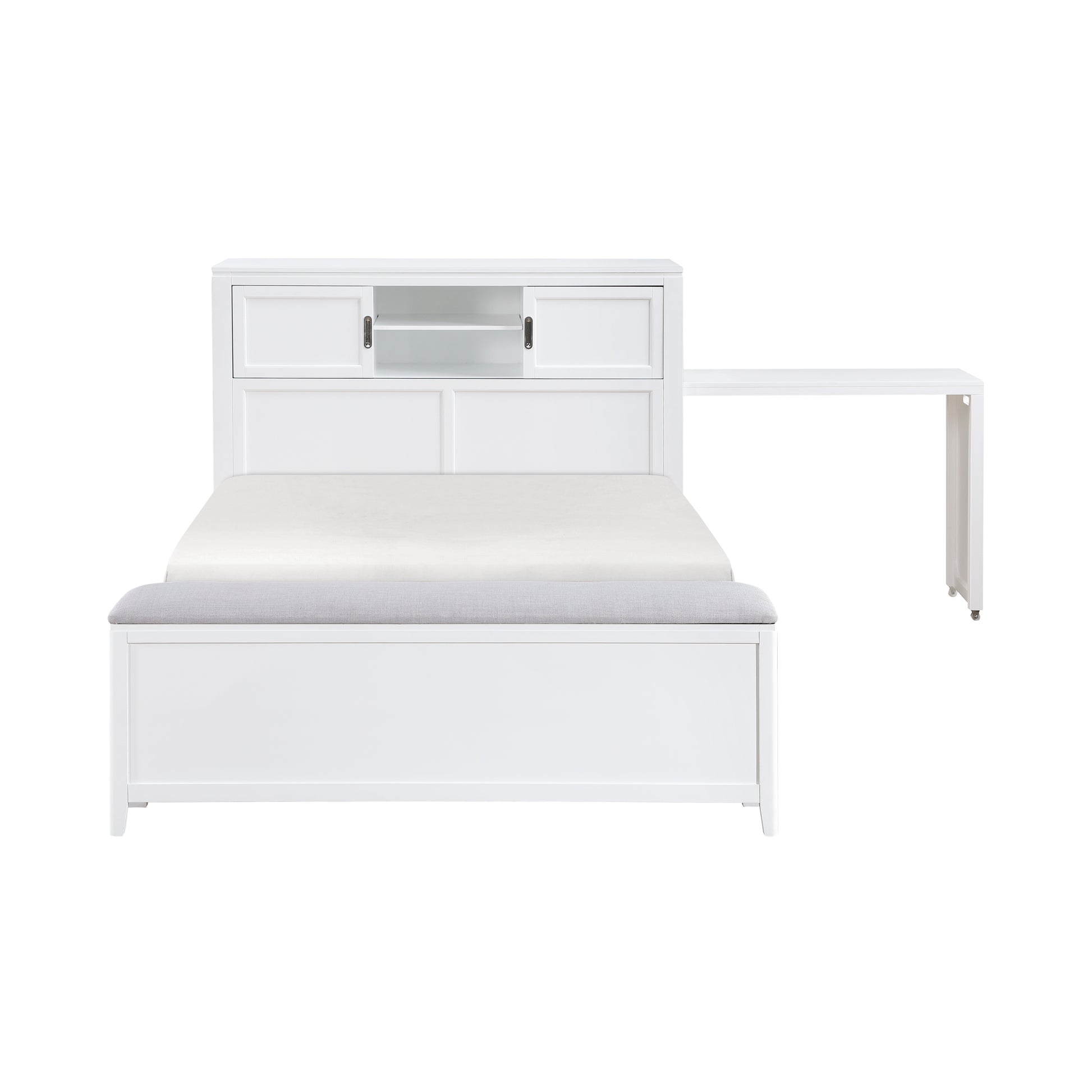 B2024WHBCF-1* - (2) Full Bookcase Bed with Hidden Desk, Stool and Storage Bench
