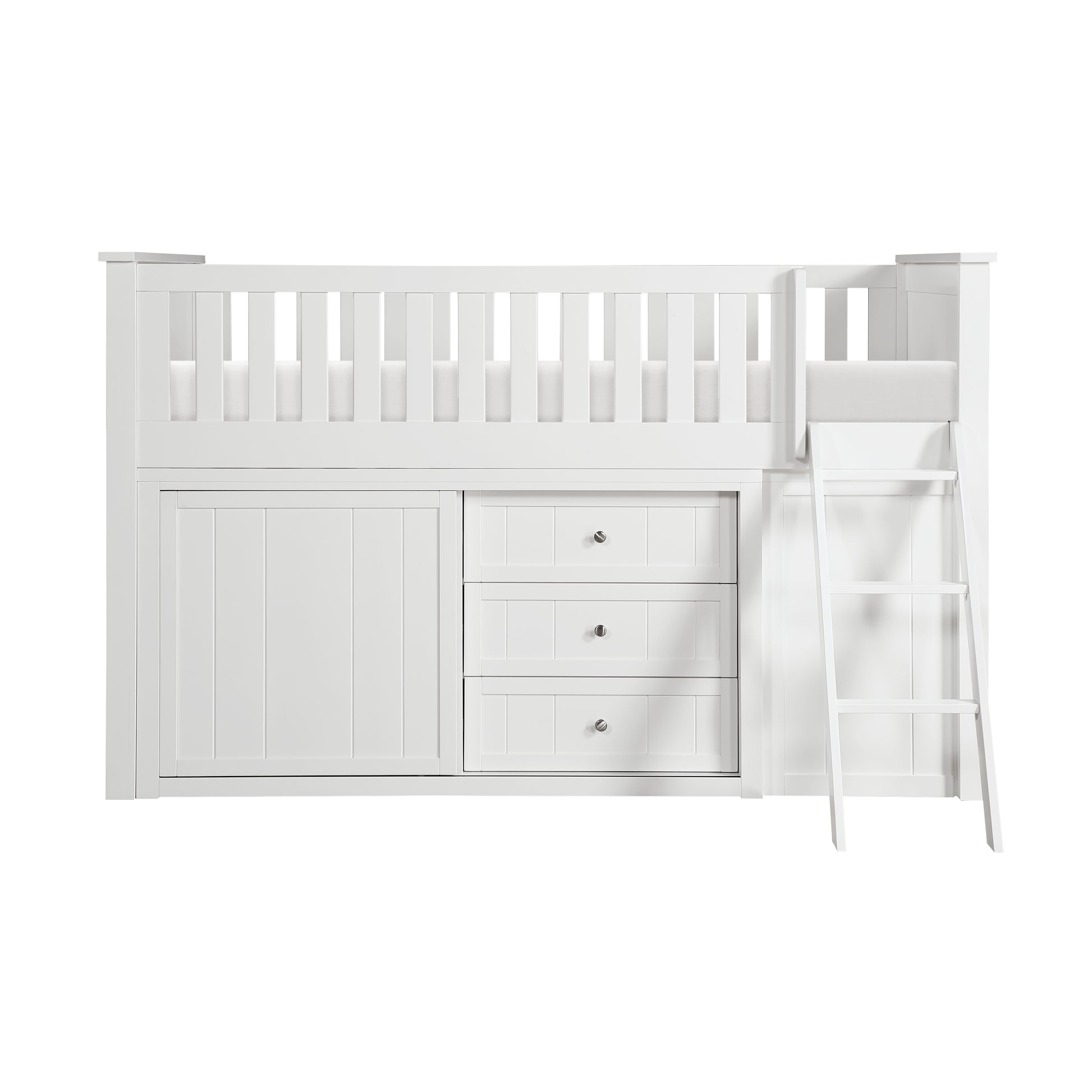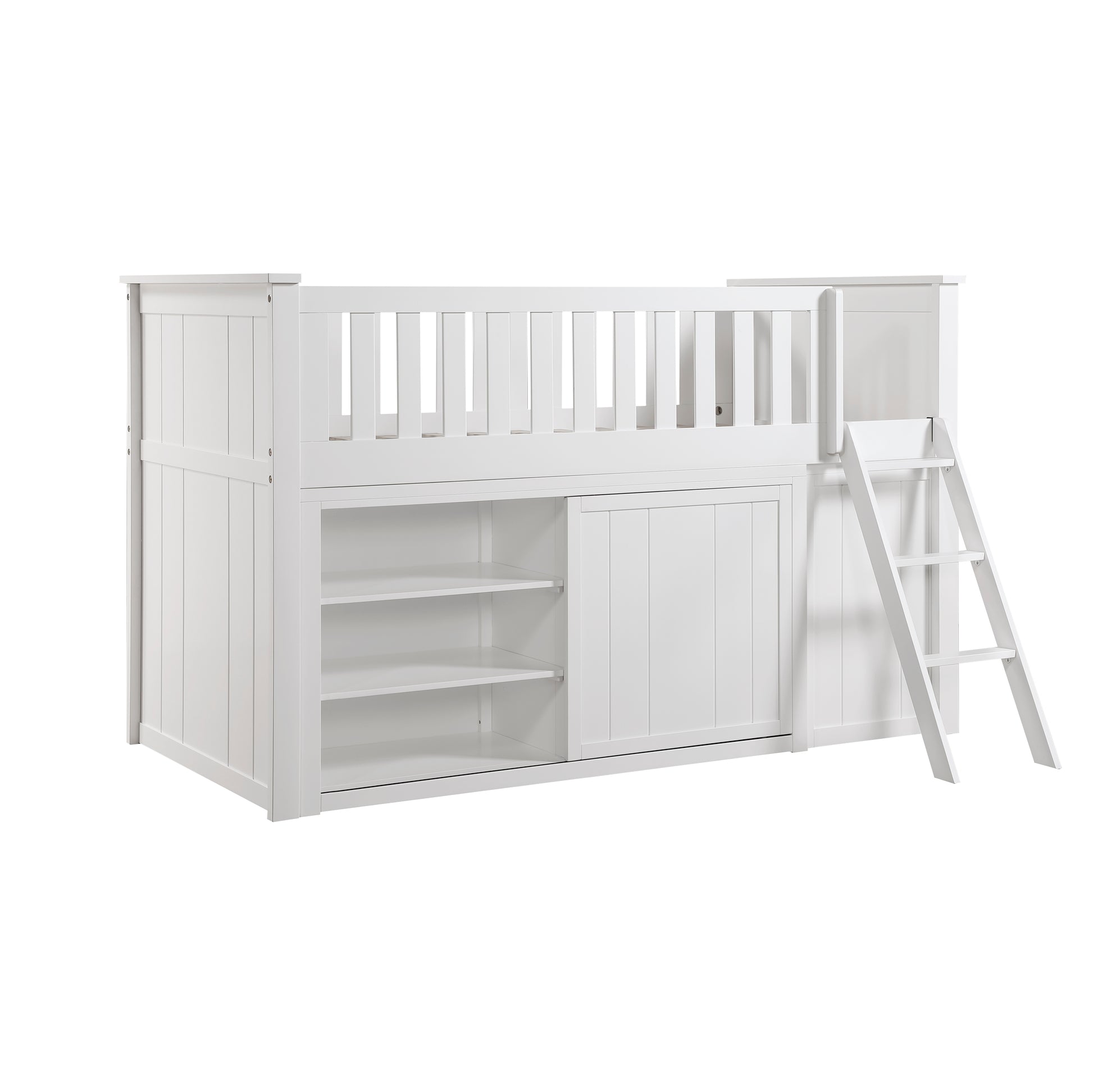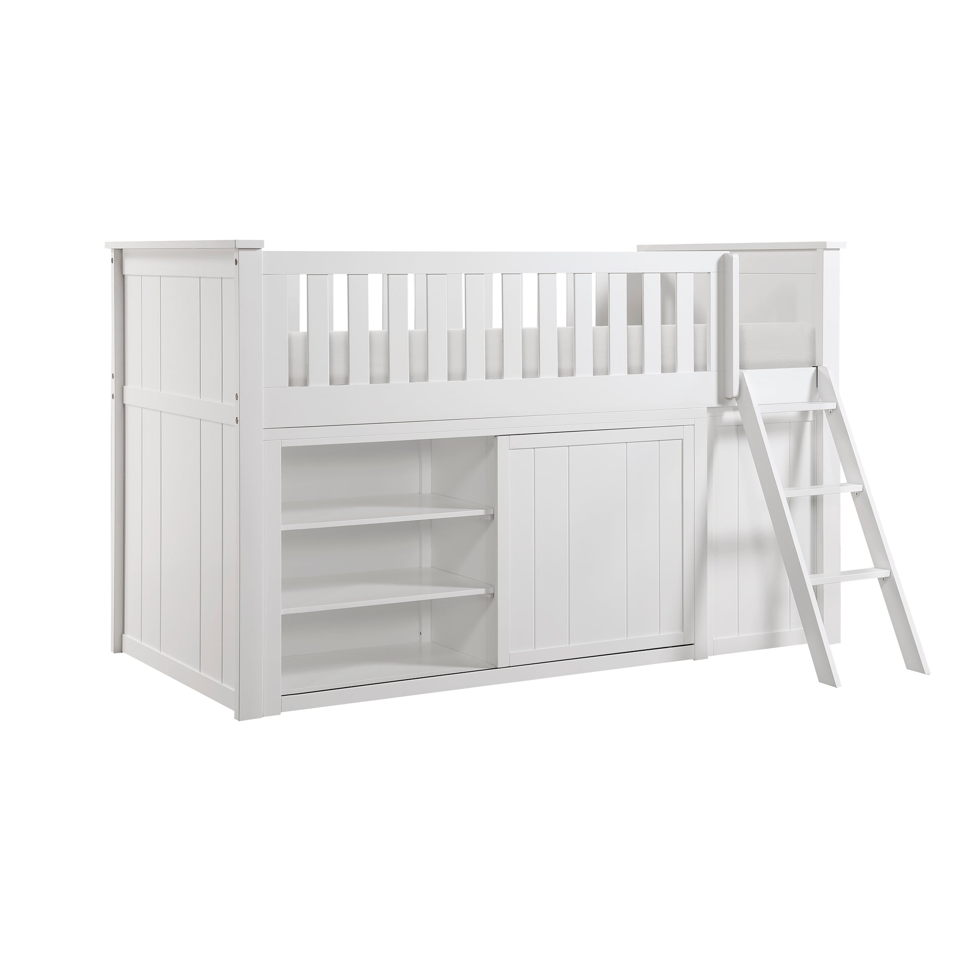 Maximizing sleep space is achieved with the stylish Galen Collection. This transitional twin low-loft bunkbed is featured in a white finish making it an appropriate choice for a number of youth bedroom settings. An angled ladder provides easy access to the loft platform. Providing below-the-bed storage are two dressers and bookcase, each specifically designed to fit within the parameters of the available lower space with the dressers providing shelf and drawer storage and the bookcase allowing for open display of your child's favorite books and collectables.