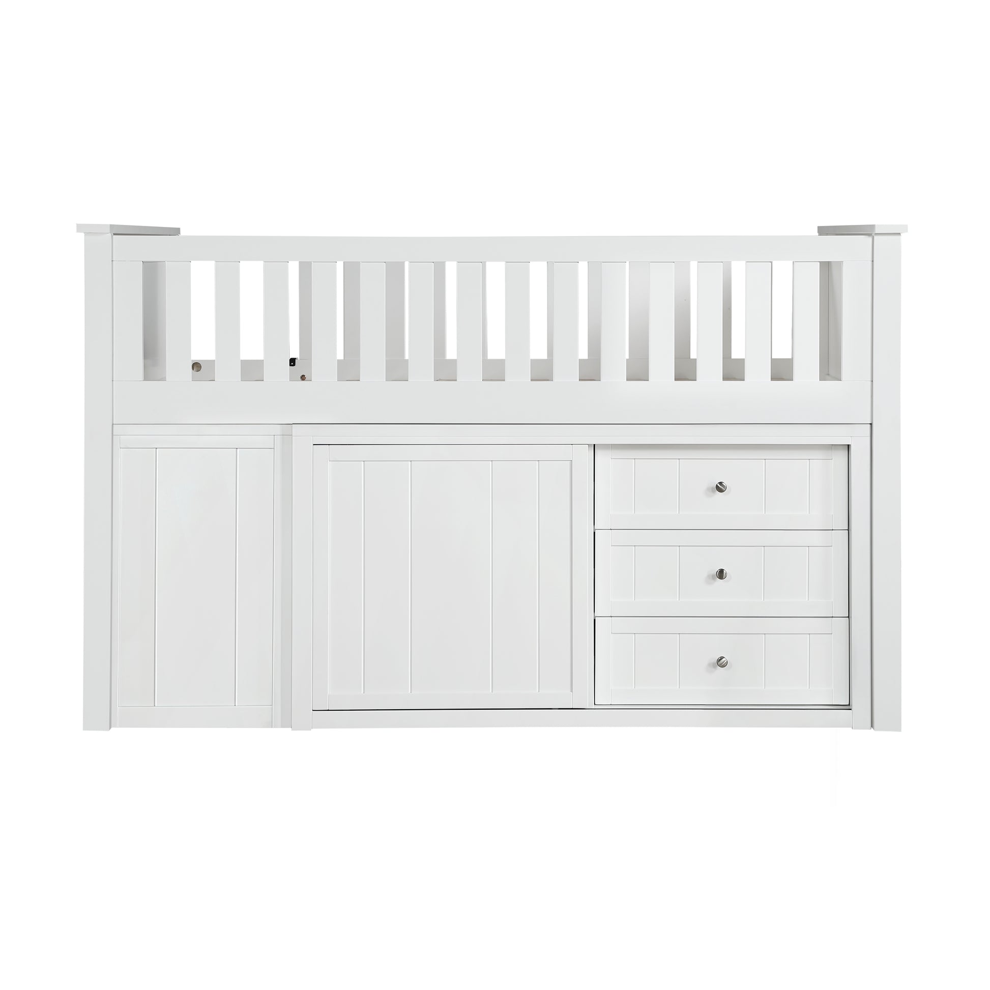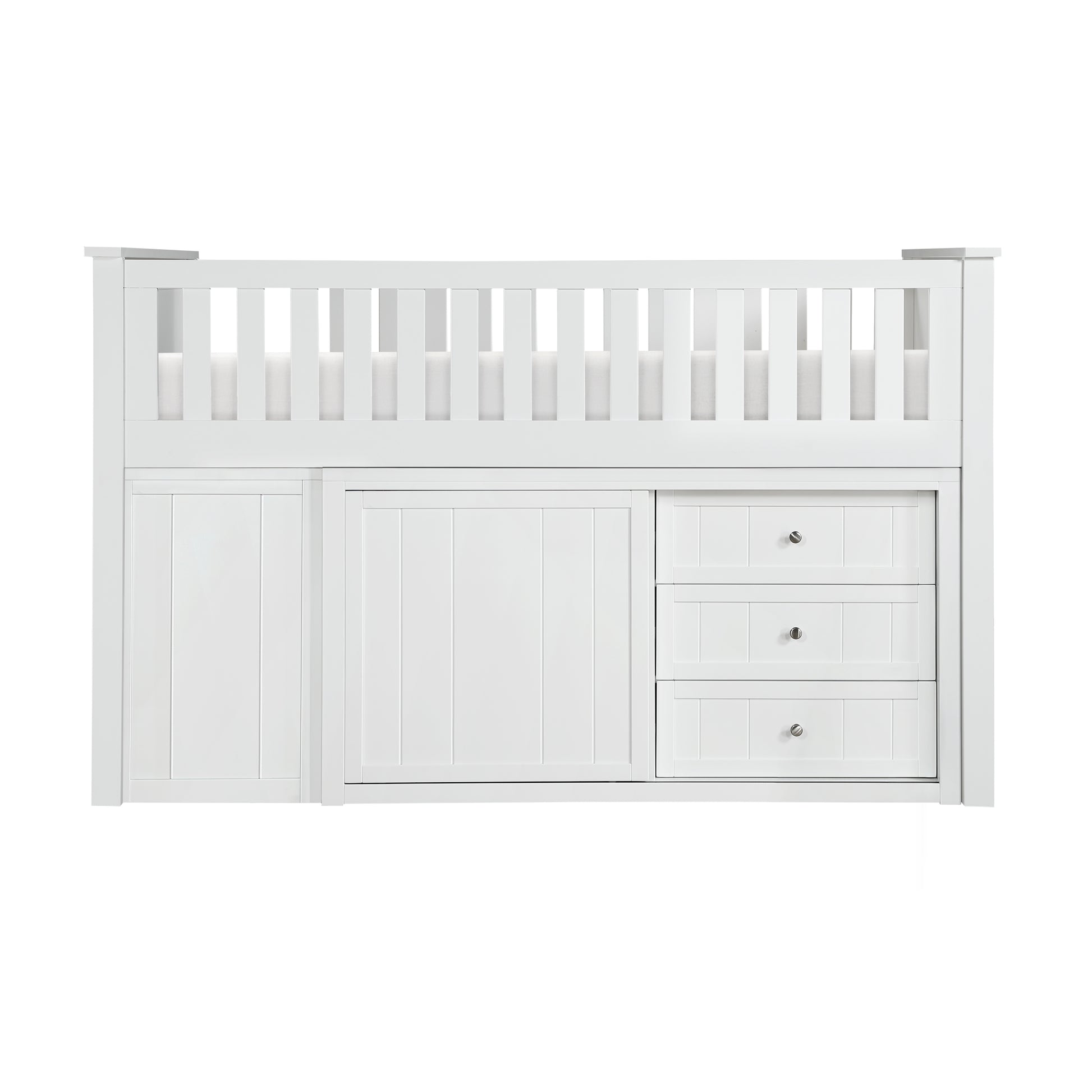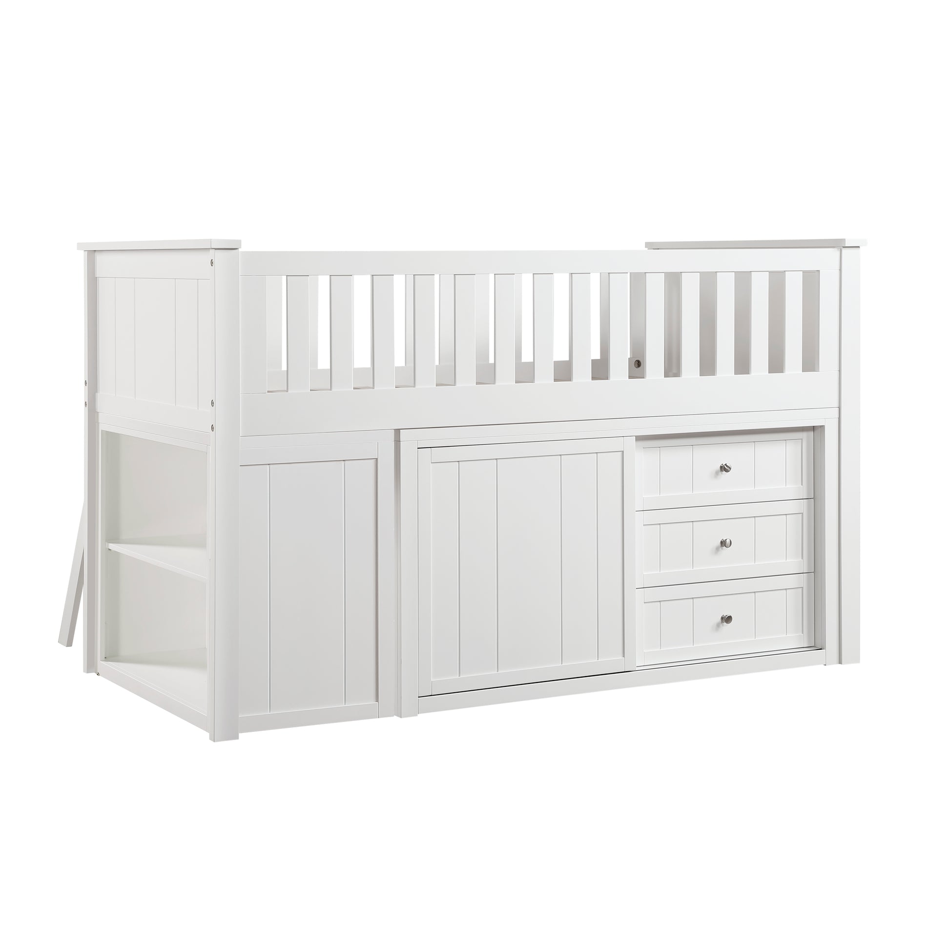 Maximizing sleep space is achieved with the stylish Galen Collection. This transitional twin low-loft bunkbed is featured in a white finish making it an appropriate choice for a number of youth bedroom settings. An angled ladder provides easy access to the loft platform. Providing below-the-bed storage are two dressers and bookcase, each specifically designed to fit within the parameters of the available lower space with the dressers providing shelf and drawer storage and the bookcase allowing for open display of your child's favorite books and collectables.