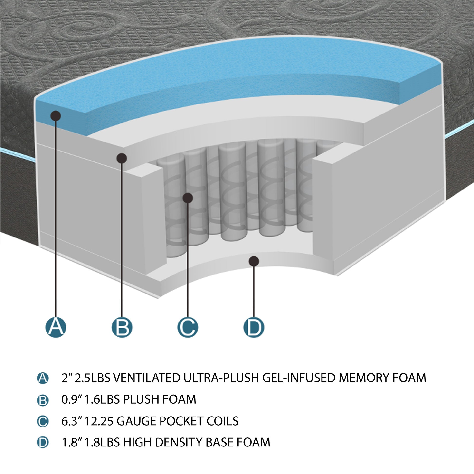 - 2" ultra-plush gel-infused memory foam + 0.9" plush foam for lumbar support