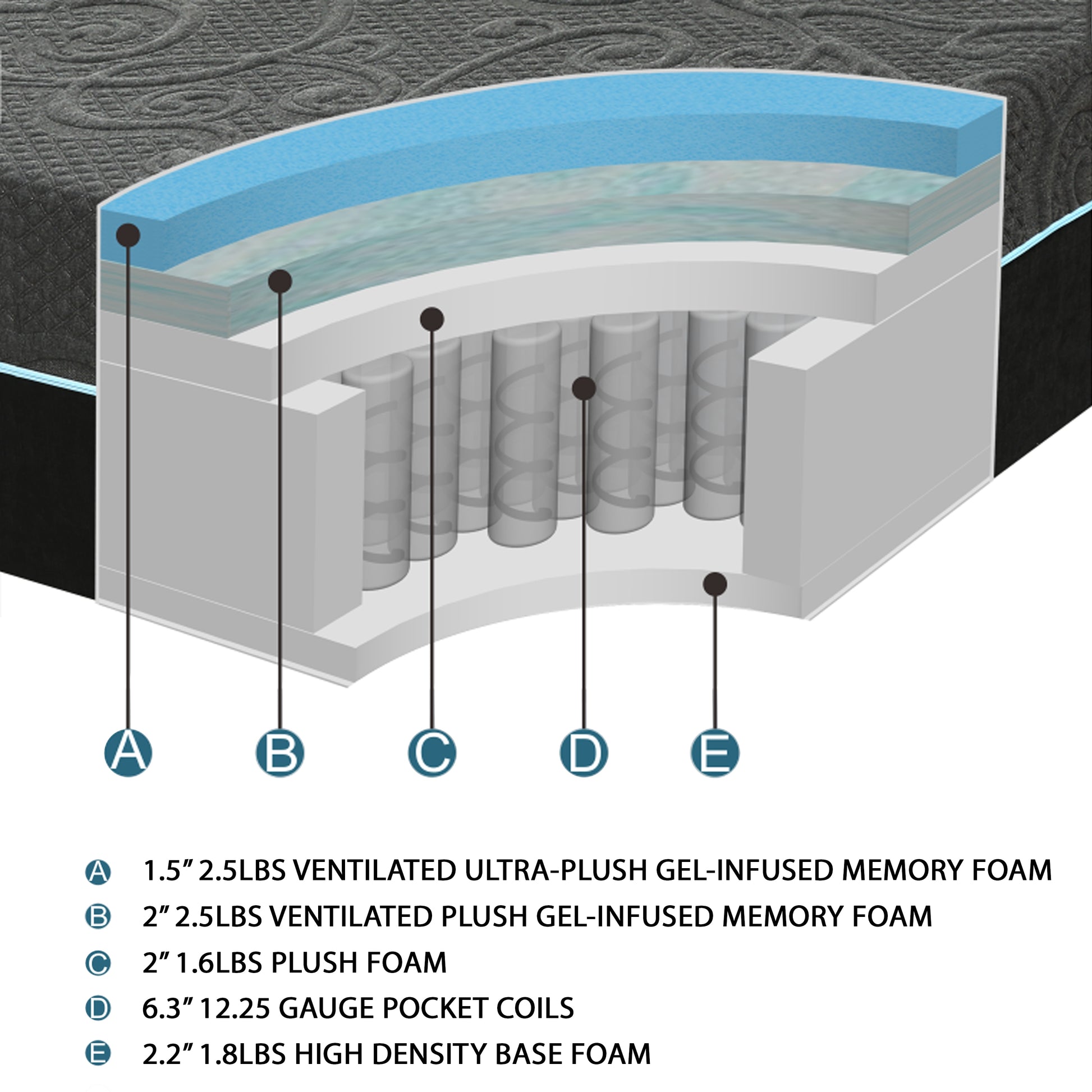 - 1.5+2" ultra-plush gel-infused memory foam + 2" plush foam for lumbar support